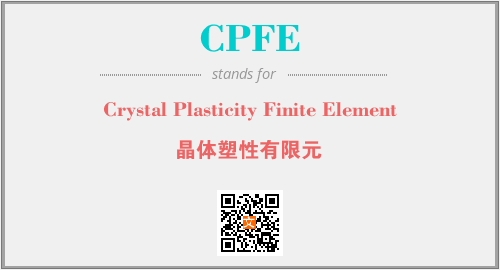 上述内容是“Crystal Plasticity Finite Element”作为“CPFE”的缩写,解释为“晶体塑性有限元”时的信息,以及英文缩略词CPFE所代表的英文单词,其对应的中文拼音、详细解释以及在英文中的流行度和相关分类、应用领域及应用示例等。