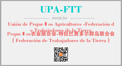 上述内容是“Unión de Pequeños Agricultores -Federación de Trabajadores de la Tierra”作为“UPA-FTT”的缩写,解释为“Pequeños农业联合会-特拉巴贾多尔群岛联合会(Federación de Trabajadores de la Tierra)”时的信息,以及英文缩略词UPA-FTT所代表的英文单词,其对应的中文拼音、详细解释以及在英文中的流行度和相关分类、应用领域及应用示例等。