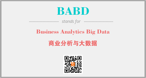英文缩略词“BABD”经常作为“Business Analytics Big Data”的英文缩写来使用,中文表示:“商业分析与大数据”。本文将详细介绍英文缩写词BABD所代表英文单词,其对应的中文拼音、详细解释以及在英语中的流行度。此外,还有关于缩略词BABD的分类、应用领域及相关应用示例等。