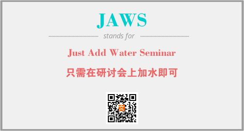 以上为Just Add Water Seminar英文缩略词JAWS的中文解释,以及该英文缩写在英语的流行度、分类和应用领域方面的信息。