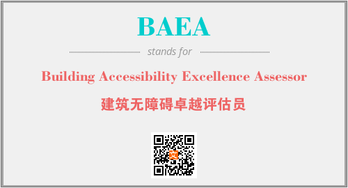 英文缩略词“BAEA”经常作为“Building Accessibility Excellence Assessor”的英文缩写来使用,中文表示:“建筑无障碍卓越评估员”。本文将详细介绍英文缩写词BAEA所代表英文单词,其对应的中文拼音、详细解释以及在英语中的流行度。此外,还有关于缩略词BAEA的分类、应用领域及相关应用示例等。