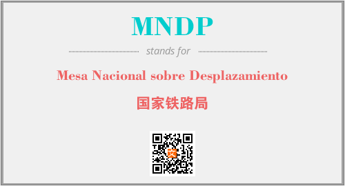 上述内容是“Mesa Nacional sobre Desplazamiento”作为“MNDP”的缩写,解释为“国家铁路局”时的信息,以及英文缩略词MNDP所代表的英文单词,其对应的中文拼音、详细解释以及在英文中的流行度和相关分类、应用领域及应用示例等。