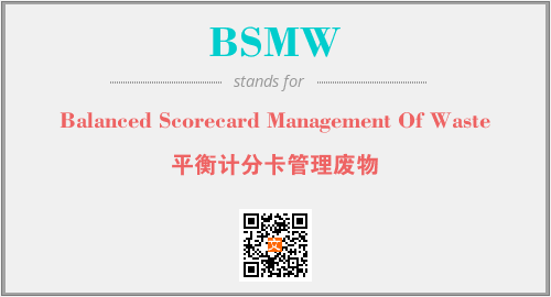 英文缩略词“BSMW”经常作为“Balanced Scorecard Management Of Waste”的英文缩写来使用,中文表示:“平衡计分卡管理废物”。本文将详细介绍英文缩写词BSMW所代表英文单词,其对应的中文拼音、详细解释以及在英语中的流行度。此外,还有关于缩略词BSMW的分类、应用领域及相关应用示例等。
