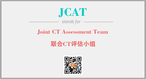 上述内容是“Joint CT Assessment Team”作为“JCAT”的缩写,解释为“联合CT评估小组”时的信息,以及英文缩略词JCAT所代表的英文单词,其对应的中文拼音、详细解释以及在英文中的流行度和相关分类、应用领域及应用示例等。