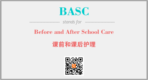 英文缩略词“BASC”经常作为“Before and After School Care”的英文缩写来使用,中文表示:“课前和课后护理”。本文将详细介绍英文缩写词BASC所代表英文单词,其对应的中文拼音、详细解释以及在英语中的流行度。此外,还有关于缩略词BASC的分类、应用领域及相关应用示例等。