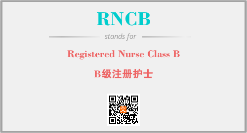 英文缩略词“RNCB”经常作为“Registered Nurse Class B”的英文缩写来使用,中文表示:“B级注册护士”。本文将详细介绍英文缩写词RNCB所代表英文单词,其对应的中文拼音、详细解释以及在英语中的流行度。此外,还有关于缩略词RNCB的分类、应用领域及相关应用示例等。
