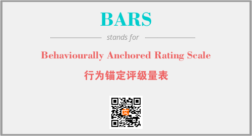 英文缩略词“BARS”经常作为“Behaviourally Anchored Rating Scale”的英文缩写来使用,中文表示:“行为锚定评级量表”。本文将详细介绍英文缩写词BARS所代表英文单词,其对应的中文拼音、详细解释以及在英语中的流行度。此外,还有关于缩略词BARS的分类、应用领域及相关应用示例等。
