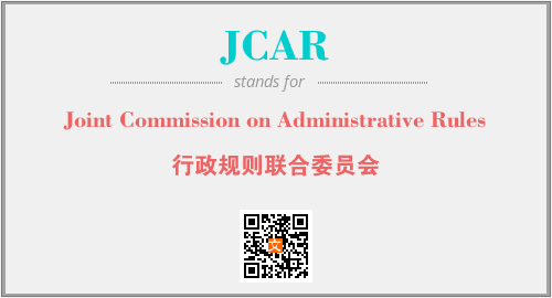 英文缩略词“JCAR”经常作为“Joint Commission on Administrative Rules”的英文缩写来使用,中文表示:“行政规则联合委员会”。本文将详细介绍英文缩写词JCAR所代表英文单词,其对应的中文拼音、详细解释以及在英语中的流行度。此外,还有关于缩略词JCAR的分类、应用领域及相关应用示例等。