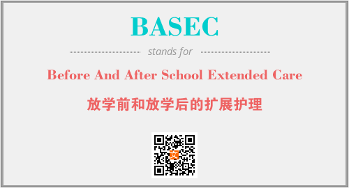 上述内容是“Before And After School Extended Care”作为“BASEC”的缩写,解释为“放学前和放学后的扩展护理”时的信息,以及英文缩略词BASEC所代表的英文单词,其对应的中文拼音、详细解释以及在英文中的流行度和相关分类、应用领域及应用示例等。