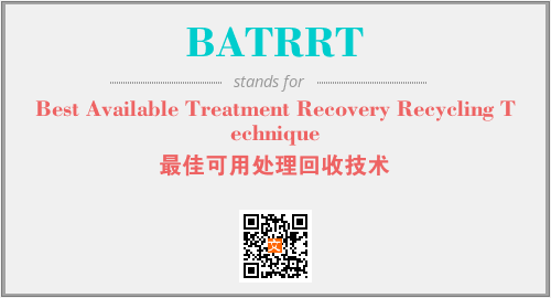 上述内容是“Best Available Treatment Recovery Recycling Technique”作为“BATRRT”的缩写,解释为“最佳可用处理回收技术”时的信息,以及英文缩略词BATRRT所代表的英文单词,其对应的中文拼音、详细解释以及在英文中的流行度和相关分类、应用领域及应用示例等。