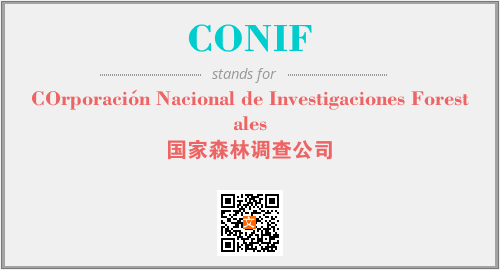 上述内容是“COrporación Nacional de Investigaciones Forestales”作为“CONIF”的缩写,解释为“国家森林调查公司”时的信息,以及英文缩略词CONIF所代表的英文单词,其对应的中文拼音、详细解释以及在英文中的流行度和相关分类、应用领域及应用示例等。