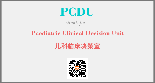 以上为Paediatric Clinical Decision Unit英文缩略词PCDU的中文解释,以及该英文缩写在英语的流行度、分类和应用领域方面的信息。