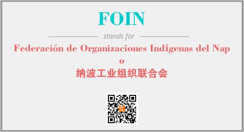 上述内容是“Federación de Organizaciones Indígenas del Napo”作为“FOIN”的缩写,解释为“纳波工业组织联合会”时的信息,以及英文缩略词FOIN所代表的英文单词,其对应的中文拼音、详细解释以及在英文中的流行度和相关分类、应用领域及应用示例等。