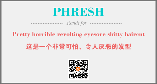 以上为Pretty horrible revolting eyesore shitty haircut英文缩略词PHRESH的中文解释,以及该英文缩写在英语的流行度、分类和应用领域方面的信息。