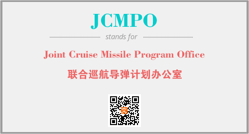 上述内容是“Joint Cruise Missile Program Office”作为“JCMPO”的缩写,解释为“联合巡航导弹计划办公室”时的信息,以及英文缩略词JCMPO所代表的英文单词,其对应的中文拼音、详细解释以及在英文中的流行度和相关分类、应用领域及应用示例等。