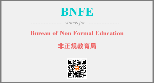 上述内容是“Bureau of Non Formal Education”作为“BNFE”的缩写,解释为“非正规教育局”时的信息,以及英文缩略词BNFE所代表的英文单词,其对应的中文拼音、详细解释以及在英文中的流行度和相关分类、应用领域及应用示例等。