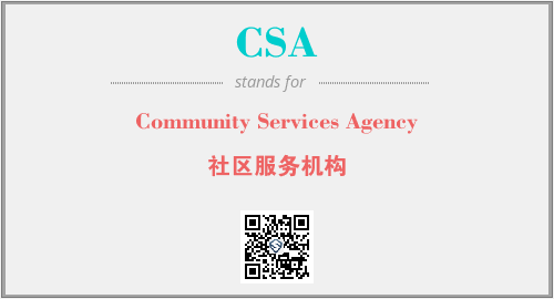 英文缩略词“CSA”经常作为“Community Services Agency”的英文缩写来使用,中文表示:“社区服务机构”。本文将详细介绍英文缩写词CSA所代表英文单词,其对应的中文拼音、详细解释以及在英语中的流行度。此外,还有关于缩略词CSA的分类、应用领域及相关应用示例等。