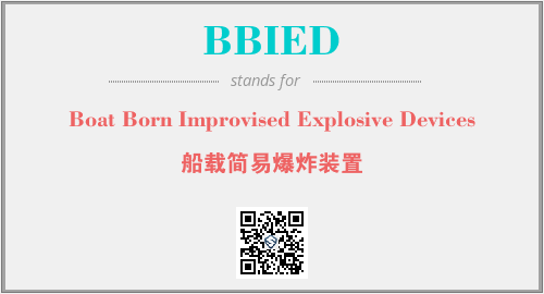英文缩略词“BBIED”经常作为“Boat Born Improvised Explosive Devices”的英文缩写来使用,中文表示:“船载简易爆炸装置”。本文将详细介绍英文缩写词BBIED所代表英文单词,其对应的中文拼音、详细解释以及在英语中的流行度。此外,还有关于缩略词BBIED的分类、应用领域及相关应用示例等。
