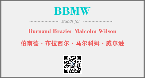 上述内容是“Burnand Brazier Malcolm Wilson”作为“BBMW”的缩写,解释为“伯南德·布拉西尔·马尔科姆·威尔逊”时的信息,以及英文缩略词BBMW所代表的英文单词,其对应的中文拼音、详细解释以及在英文中的流行度和相关分类、应用领域及应用示例等。