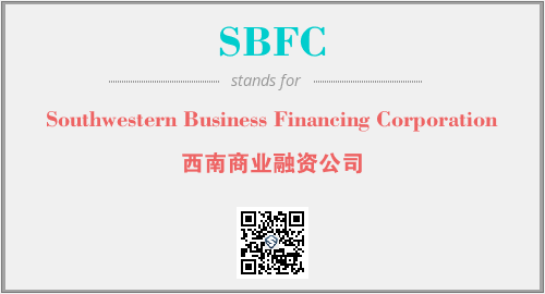 上述内容是“Southwestern Business Financing Corporation”作为“SBFC”的缩写,解释为“西南商业融资公司”时的信息,以及英文缩略词SBFC所代表的英文单词,其对应的中文拼音、详细解释以及在英文中的流行度和相关分类、应用领域及应用示例等。