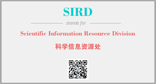 上述内容是“Scientific Information Resource Division”作为“SIRD”的缩写,解释为“科学信息资源处”时的信息,以及英文缩略词SIRD所代表的英文单词,其对应的中文拼音、详细解释以及在英文中的流行度和相关分类、应用领域及应用示例等。