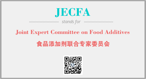 上述内容是“Joint Expert Committee on Food Additives”作为“JECFA”的缩写,解释为“食品添加剂联合专家委员会”时的信息,以及英文缩略词JECFA所代表的英文单词,其对应的中文拼音、详细解释以及在英文中的流行度和相关分类、应用领域及应用示例等。