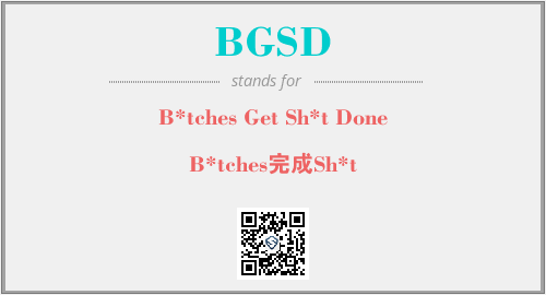 英文缩略词“BGSD”经常作为“B*tches Get Sh*t Done”的英文缩写来使用,中文表示:“B*tches完成Sh*t”。本文将详细介绍英文缩写词BGSD所代表英文单词,其对应的中文拼音、详细解释以及在英语中的流行度。此外,还有关于缩略词BGSD的分类、应用领域及相关应用示例等。