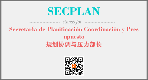 上述内容是“Secretaría de Planificación Coordinación y Presupuesto”作为“SECPLAN”的缩写,解释为“规划协调与压力部长”时的信息,以及英文缩略词SECPLAN所代表的英文单词,其对应的中文拼音、详细解释以及在英文中的流行度和相关分类、应用领域及应用示例等。