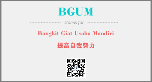 上述内容是“Bangkit Giat Usaha Mandiri”作为“BGUM”的缩写,解释为“提高自我努力”时的信息,以及英文缩略词BGUM所代表的英文单词,其对应的中文拼音、详细解释以及在英文中的流行度和相关分类、应用领域及应用示例等。