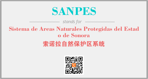 上述内容是“Sistema de Areas Naturales Protegidas del Estado de Sonora”作为“SANPES”的缩写,解释为“索诺拉自然保护区系统”时的信息,以及英文缩略词SANPES所代表的英文单词,其对应的中文拼音、详细解释以及在英文中的流行度和相关分类、应用领域及应用示例等。