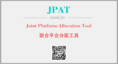 上述内容是“Joint Platform Allocation Tool”作为“JPAT”的缩写,解释为“联合平台分配工具”时的信息,以及英文缩略词JPAT所代表的英文单词,其对应的中文拼音、详细解释以及在英文中的流行度和相关分类、应用领域及应用示例等。