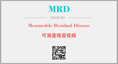 上述内容是“Measurable Residual Disease”作为“MRD”的缩写,解释为“可测量残留疾病”时的信息,以及英文缩略词MRD所代表的英文单词,其对应的中文拼音、详细解释以及在英文中的流行度和相关分类、应用领域及应用示例等。