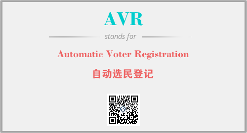 英文缩略词“AVR”经常作为“Automatic Voter Registration”的英文缩写来使用,中文表示:“自动选民登记”。本文将详细介绍英文缩写词AVR所代表英文单词,其对应的中文拼音、详细解释以及在英语中的流行度。此外,还有关于缩略词AVR的分类、应用领域及相关应用示例等。