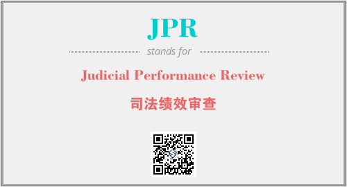 英文缩略词“JPR”经常作为“Judicial Performance Review”的英文缩写来使用,中文表示:“司法绩效审查”。本文将详细介绍英文缩写词JPR所代表英文单词,其对应的中文拼音、详细解释以及在英语中的流行度。此外,还有关于缩略词JPR的分类、应用领域及相关应用示例等。