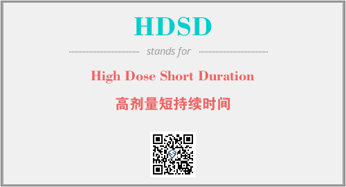 上述内容是“High Dose Short Duration”作为“HDSD”的缩写,解释为“高剂量短持续时间”时的信息,以及英文缩略词HDSD所代表的英文单词,其对应的中文拼音、详细解释以及在英文中的流行度和相关分类、应用领域及应用示例等。