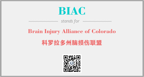 上述内容是“Brain Injury Alliance of Colorado”作为“BIAC”的缩写,解释为“科罗拉多州脑损伤联盟”时的信息,以及英文缩略词BIAC所代表的英文单词,其对应的中文拼音、详细解释以及在英文中的流行度和相关分类、应用领域及应用示例等。