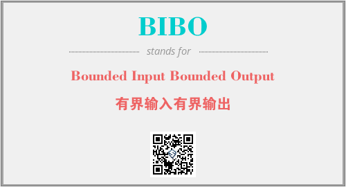 上述内容是“Bounded Input Bounded Output”作为“BIBO”的缩写,解释为“有界输入有界输出”时的信息,以及英文缩略词BIBO所代表的英文单词,其对应的中文拼音、详细解释以及在英文中的流行度和相关分类、应用领域及应用示例等。