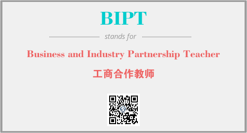 上述内容是“Business and Industry Partnership Teacher”作为“BIPT”的缩写,解释为“工商合作教师”时的信息,以及英文缩略词BIPT所代表的英文单词,其对应的中文拼音、详细解释以及在英文中的流行度和相关分类、应用领域及应用示例等。