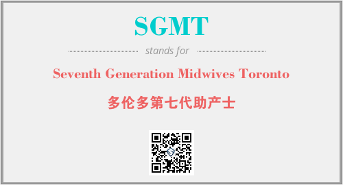 上述内容是“Seventh Generation Midwives Toronto”作为“SGMT”的缩写,解释为“多伦多第七代助产士”时的信息,以及英文缩略词SGMT所代表的英文单词,其对应的中文拼音、详细解释以及在英文中的流行度和相关分类、应用领域及应用示例等。