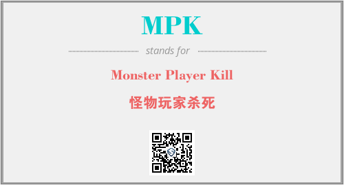 上述内容是“Monster Player Kill”作为“MPK”的缩写,解释为“怪物玩家杀死”时的信息,以及英文缩略词MPK所代表的英文单词,其对应的中文拼音、详细解释以及在英文中的流行度和相关分类、应用领域及应用示例等。