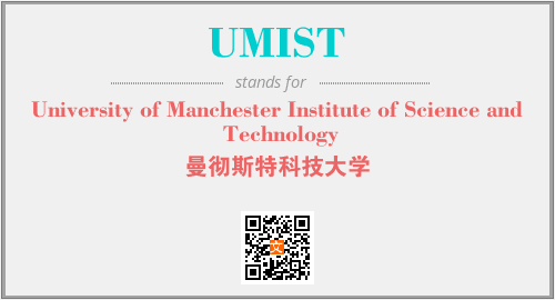 上述内容是“University of Manchester Institute of Science and Technology”作为“UMIST”的缩写,解释为“曼彻斯特科技大学”时的信息,以及英文缩略词UMIST所代表的英文单词,其对应的中文拼音、详细解释以及在英文中的流行度和相关分类、应用领域及应用示例等。