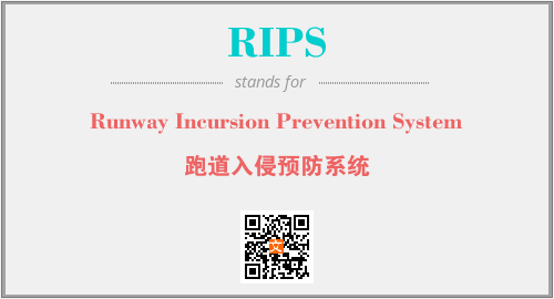 上述内容是“Runway Incursion Prevention System”作为“RIPS”的缩写,解释为“跑道入侵预防系统”时的信息,以及英文缩略词RIPS所代表的英文单词,其对应的中文拼音、详细解释以及在英文中的流行度和相关分类、应用领域及应用示例等。