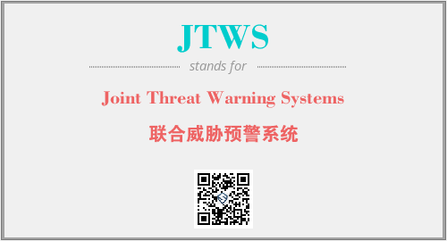 上述内容是“Joint Threat Warning Systems”作为“JTWS”的缩写,解释为“联合威胁预警系统”时的信息,以及英文缩略词JTWS所代表的英文单词,其对应的中文拼音、详细解释以及在英文中的流行度和相关分类、应用领域及应用示例等。