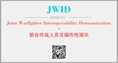 上述内容是“Joint Warfighter Interoperability Demonstrations”作为“JWID”的缩写,解释为“联合作战人员互操作性演示”时的信息,以及英文缩略词JWID所代表的英文单词,其对应的中文拼音、详细解释以及在英文中的流行度和相关分类、应用领域及应用示例等。