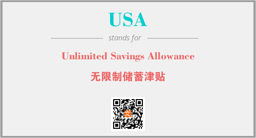 上述内容是“Unlimited Savings Allowance”作为“USA”的缩写,解释为“无限制储蓄津贴”时的信息,以及英文缩略词USA所代表的英文单词,其对应的中文拼音、详细解释以及在英文中的流行度和相关分类、应用领域及应用示例等。