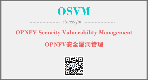 上述内容是“OPNFV Security Vulnerability Management”作为“OSVM”的缩写,解释为“OPNFV安全漏洞管理”时的信息,以及英文缩略词OSVM所代表的英文单词,其对应的中文拼音、详细解释以及在英文中的流行度和相关分类、应用领域及应用示例等。