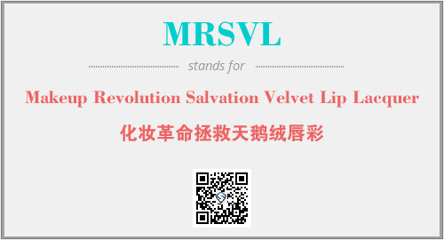 以上为Makeup Revolution Salvation Velvet Lip Lacquer英文缩略词MRSVL的中文解释,以及该英文缩写在英语的流行度、分类和应用领域方面的信息。