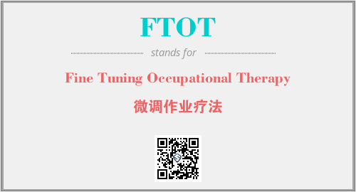 英文缩略词“FTOT”经常作为“Fine Tuning Occupational Therapy”的英文缩写来使用,中文表示:“微调作业疗法”。本文将详细介绍英文缩写词FTOT所代表英文单词,其对应的中文拼音、详细解释以及在英语中的流行度。此外,还有关于缩略词FTOT的分类、应用领域及相关应用示例等。