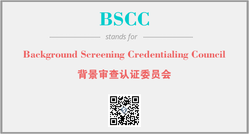 英文缩略词“BSCC”经常作为“Background Screening Credentialing Council”的英文缩写来使用,中文表示:“背景审查认证委员会”。本文将详细介绍英文缩写词BSCC所代表英文单词,其对应的中文拼音、详细解释以及在英语中的流行度。此外,还有关于缩略词BSCC的分类、应用领域及相关应用示例等。
