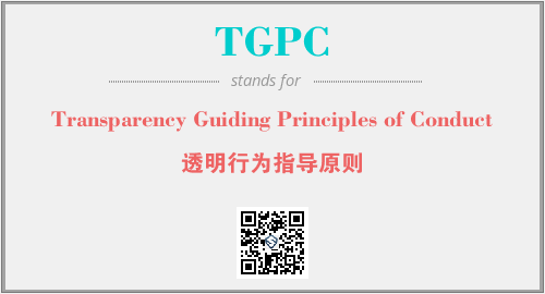 上述内容是“Transparency Guiding Principles of Conduct”作为“TGPC”的缩写,解释为“透明行为指导原则”时的信息,以及英文缩略词TGPC所代表的英文单词,其对应的中文拼音、详细解释以及在英文中的流行度和相关分类、应用领域及应用示例等。